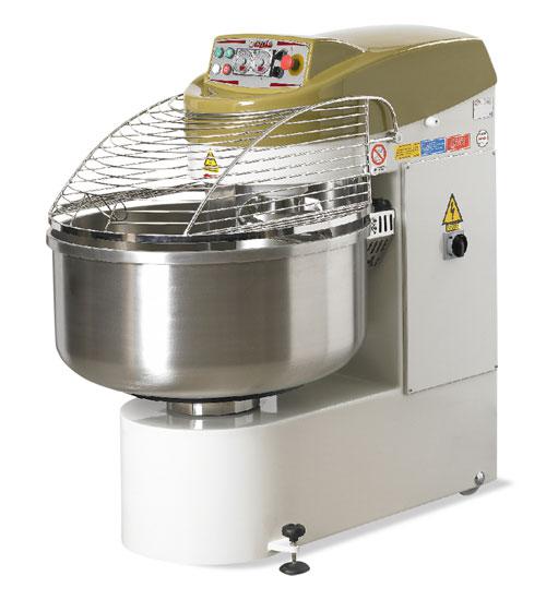 Усиленный корпус устройства исполнен из нержавеющей стали AISI 304. Основа, устанавливаемая на 2-х ножках с фиксаторами и 2-х колесиках, обеспечивает идеальную устойчивость и простоту передвижения. Чаша, объемом 192 л, и все соприкасающиеся с тестом детали выполнены из нержавеющей стали. На передней панели размещена электромеханическая система управления, включающая в себя кнопку включения, кнопку выключения, кнопку аварийной остановки, вариатор скоростей и два таймера.