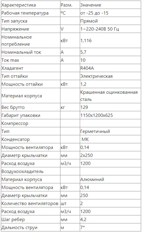 • Рабочая температура ºС от -25 до -15