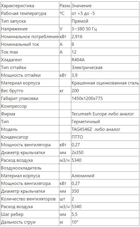 • Мощность оттайки: 3,9 кВт