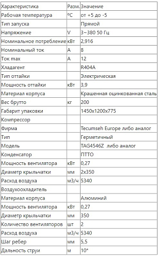 Сплит-система Intercold MCM-454 FT предназначена для охлаждения и поддержания необходимого температурного режима во внутреннем объеме холодильных камер на предприятиях пищевой промышленности.