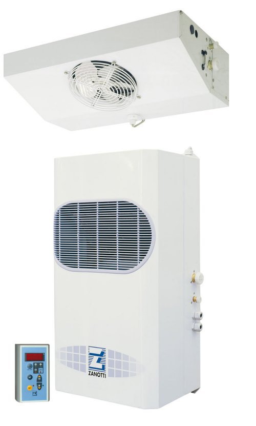 Основной особенностью этой холодильной установки является то, что она состоит из двух независимых блоков: внешний блок (компрессорно-конденсаторный агрегат) с контрольной панелью управления и внутренний блок (воздухоохладитель). Оба блока холодильной установки могут быть расположены на определенном расстоянии друг от друга. Сплит-система удобна для применения в холодильных камерах, где толщина стен не ограничена. Холодильная установка способна работать при внешней температуре до Тa=...+45 °С, с применяемыми хладагентами, R404a.