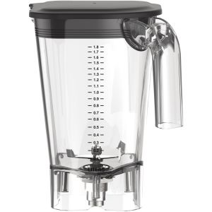 Стакан к блендерам HBH750-CE, HBH755-CE, HBH950-CE, из ударопрочного поликарбоната поставляется в сборке с ножами и крышкой без отверстия. Объём стакана - 2л. С одной стороны контейнера есть шкала в унциях, с другой стороны – в литрах.