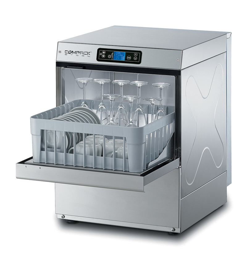 Стаканомоечная машина COMPACK X28E EXUS находит применение в заведениях общественного питания со средней посещаемостью для качественной очистки стаканов, кружек, блюдец и столовых приборов. Эта модель имеет четыре цикла мойки (75-90-110-130 секунд) при температуре воды 55 °С, электронную панель управления, двойной дозатор моющего средства и электрический ополаскиватель, а также производительность: 768 - 432 стакана в час диаметром 89 мм и высотой 245 мм, 48 кассет в час размером 400х400 мм, 576 - 324 блюдец в час диаметром 265 мм. Оборудование укомплектовано держателем для приборов, корзиной для стаканов 400х400х150 мм и держателем для тарелок на 12 мест. Дополнительно можно приобрести: регулируемые ножки из нержавеющей стали 50-70 мм, сливной насос 40 Вт, наклонную корзину для винных бокалов размером 400х400х170 мм и насос давления 40 Нр.