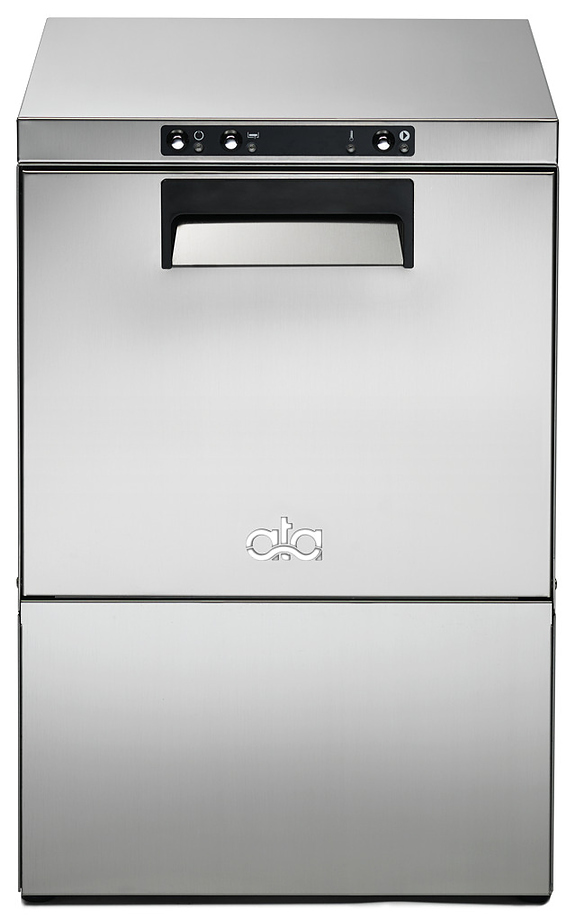 Стаканомоечная машина фронтальная ATA B 11+А5695+А4728/11 оснащена встроенным дозатором ополаскивающего средства, дозатором моющего средства арт.A5695, сливной помпой арт.А4728/11, электромеханическим управлением.