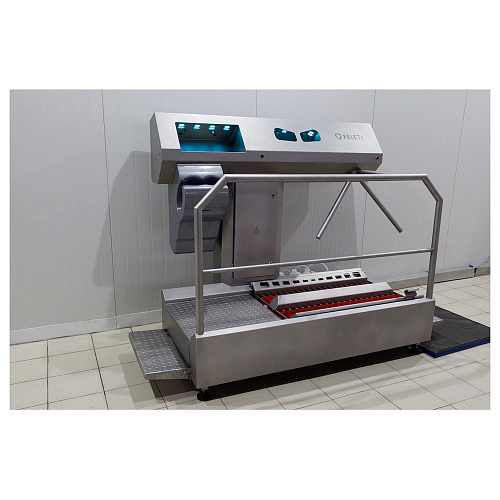 Станция гигиены полного контроля FELETI SO-4 используется для автоматической дезинфекции, мойки рук и обуви персонала перед входом в санитарную зону на предприятиях общепита, пищевой промышленности и химико-фармацевтических производствах. Предусматривает обязательное последовательное выполнение действий по мойке, дезинфекции рук и обуви.