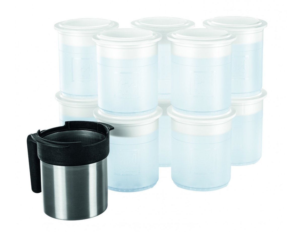 Компания Pacojet разработала прозрачный пластиковый стакан для пакотизации® с установочным защитным наружным стаканом из хромированной стали это: