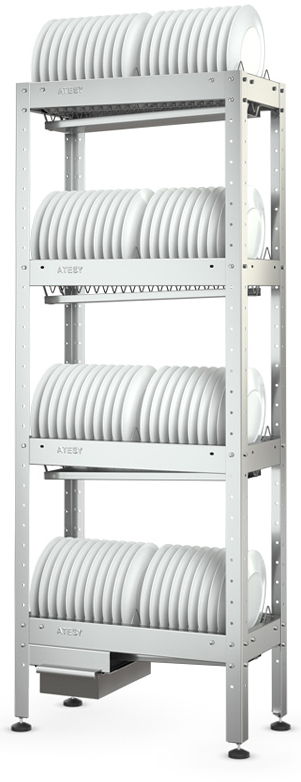 Стеллаж для тарелок Atesy СКТ-С- 600-02-Н (СКТ-1/600) используется для хранения тарелок на предприятиях общественного питания и торговли.