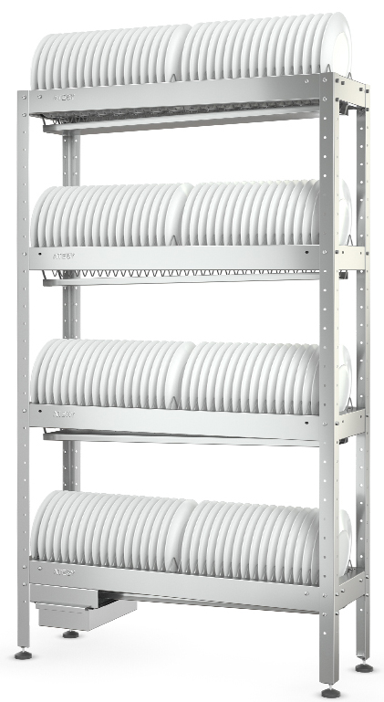 Стеллаж для тарелок Atesy СКТ-С- 950-02-Н (СКТ-1/950) применяется для хранения тарелок на предприятиях общественного питания и торговли. Опора ножек из пластика.