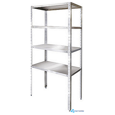 Стеллаж ITERMA СТС-21/905 на каркасе из нержавеющего уголка со сплошными полками имеет разборную конструкцию. Полка выдерживает распределенную нагрузку до 200 кг. Максимальная распределительная нагрузка на стеллаж не более 800 кг (при комплектовании стеллажа четырьмя полками). Ножки стеллажа регулируются по высоте.
