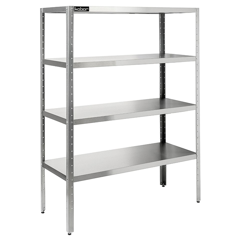 Стеллаж Кобор СК-120/40 изготовлен из высококачественной нержавеющей стали. Разработанная на предприятии система крепления полок, обеспечивает жёсткость конструкции стеллажа. Ножки стола регулируются по высоте, что позволяет избежать наклона конструкции. Изделие доставляется в разобранном виде для облегчения транспортировки.