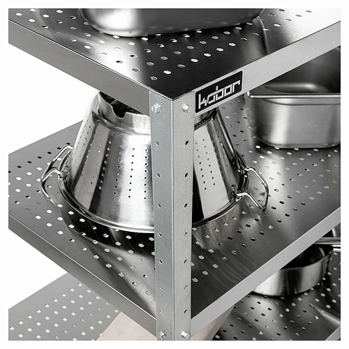 Стеллаж Кобор СКП-100/40/430 изготовлен из высококачественной нержавеющей стали. Разработанная специалистами Кобор система крепления полок обеспечивает жесткость конструкции стеллажа. Ножки стола регулируются по высоте, что позволяет избежать наклона конструкции. Изделие доставляется в разобранном виде для облегчения транспортировки.