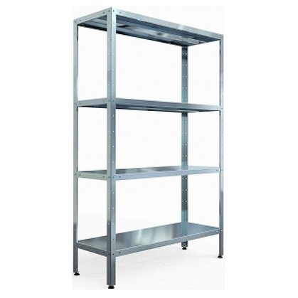 Стеллаж сборно-разборный кухонный, серии Premium, имеет 4 сплошные цельные полки из нержавеющей стали AISI 430 толщиной 0,7мм, 4 стойки из нержавеющей стали AISI 430 (уголок 40х40мм) толщиной 1,5мм. Полки усилены рёбрами жесткости из нержавеющей стали AISI 430 толщиной 0,7мм. Шаг регулировки высоты полок - 100мм. Максимальная равномерно распределенная нагрузка на полку - до 80кг. Регулируемые по высоте пластиковые опоры позволяют компенсировать неровности пола. Стойки отгружаются отдельно.