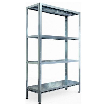 Стеллаж сборно-разборный кухонный, серии Премиум, без поддона, имеет 4 перфорированные цельные полки и усиление полки (ребро жесткости) из нержавеющей стали AISI 430 толщиной 0,7мм, 4 стойки из нержавеющей стали AISI 430 (уголок 40х40мм) толщиной 1,5мм. Шаг регулировки высоты полок - 100мм. Максимальная равномерно распределенная нагрузка на полку - до 80кг. Регулируемые по высоте пластиковые опоры позволяют компенсировать неровности пола. Стойки отгружаются отдельно.
