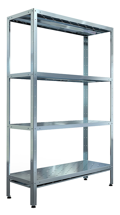 Стеллаж кухонный Assum СТПП-С-13/6 (1300х600х1800) без поддона, имеет 4 перфорированные полки из нержавеющей стали AISI 430 толщиной 0,7мм, 4 стойки из оцинкованной стали (уголок 40х40мм) толщиной 1,5мм. Кажда полка состоит из 2-х перфорированных полок глубиной 300мм. Шаг регулировки высоты полок - 100мм. Максимальная равномерно распределенная нагрузка на полку - до 80кг. Регулируемые по высоте пластиковые опоры позволяют компенсировать неровности пола. Стойки отгружаются отдельно.