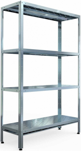 Стеллаж кухонный Assum СТПП-С-16/6 (1600х600х1800) без поддона, имеет 4 перфорированные полки из нержавеющей стали AISI 430 толщиной 0,7мм, 4 стойки из оцинкованной стали (уголок 40х40мм) толщиной 1,5мм. Кажда полка состоит из 2-х перфорированных полок глубиной 300мм. Шаг регулировки высоты полок - 100мм. Максимальная равномерно распределенная нагрузка на полку - до 80кг. Регулируемые по высоте пластиковые опоры позволяют компенсировать неровности пола. Стойки отгружаются отдельно.