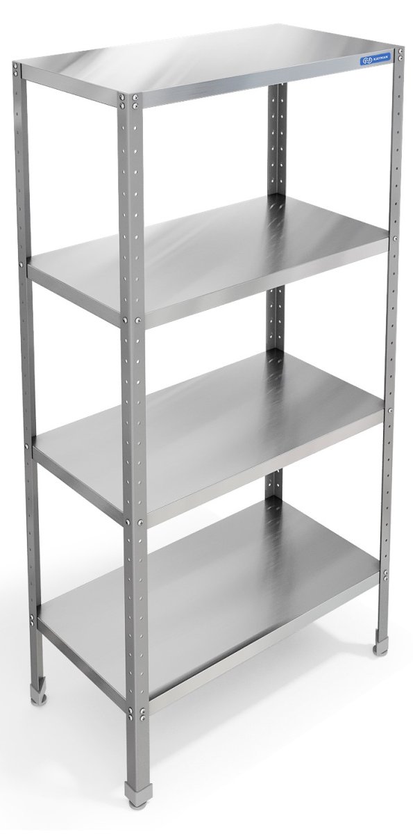 Стеллаж KAYMAN СК-241/0604 используется в кухонных цехах для хранения сухих видов продуктов и кухонного инвентаря.
