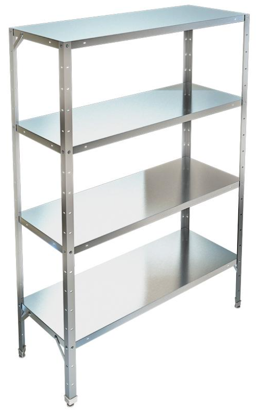 • Стойки из нержавеющей стали AISI 430 (уголок 40х40), полки сплошные из нержавеющей стали AISI 430.