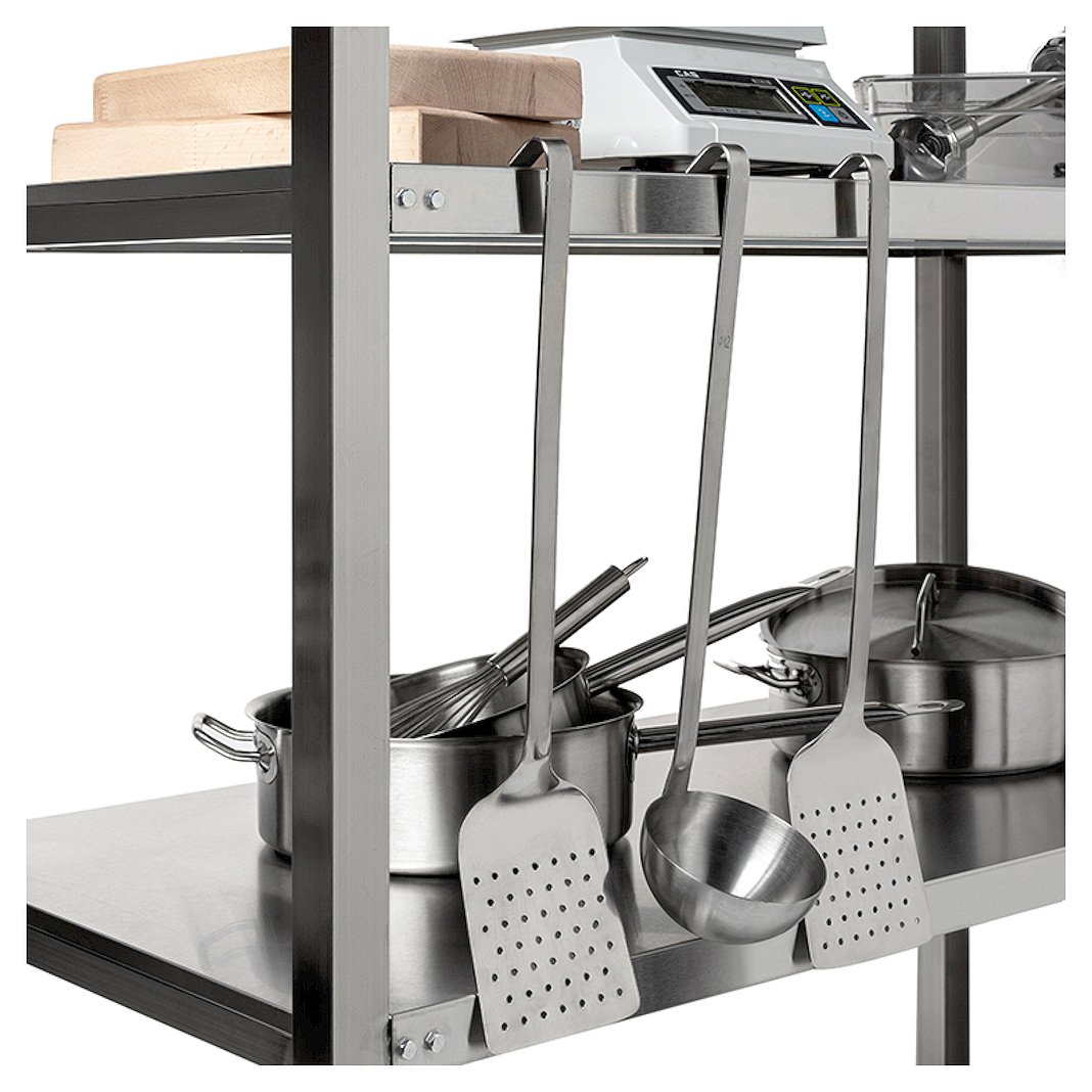 Стеллаж кухонный разборный КОБОР СКТР-120/60 - выполнен из нержавеющей стали. Содержит 4 полки, расположенные каскадным образом. Разработанная на предприятии система крепления полок, обеспечивает жёсткость конструкции стеллажа. Каркас стеллажа состоит из ножек, выполненных из нержавеющей квадратной трубы 40х40 мм. Ножки стеллажа снабжены регуляторами высоты, позволяющими устранять возможные неровности пола. Опоры регуляторов высоты не подвержены коррозии. Стеллаж имеет разборную конструкцию, что является несомненным плюсом при транспортировке, монтаже и хранении.