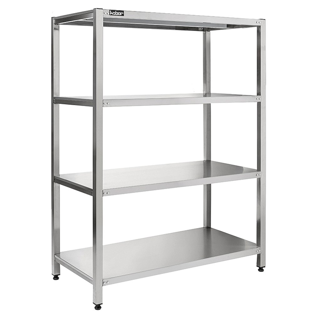 Стеллаж кухонный разборный КОБОР СКТР-90/60 - выполнен из нержавеющей стали. Содержит 4 полки, расположенные каскадным образом. Разработанная на предприятии система крепления полок, обеспечивает жёсткость конструкции стеллажа. Каркас стеллажа состоит из ножек, выполненных из нержавеющей квадратной трубы 40х40 мм. Ножки стеллажа снабжены регуляторами высоты, позволяющими устранять возможные неровности пола. Опоры регуляторов высоты не подвержены коррозии. Стеллаж имеет разборную конструкцию, что является несомненным плюсом при транспортировке, монтаже и хранении.