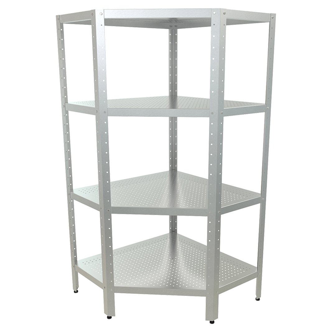 Стеллаж перфорированный угловой КОБОР СКПУ-3/5-100/80/430, разборный, предназначен для хранения посуды, кухонной утвари и сухих продуктов на предприятиях общественного питания, торговли и в промышленно-производственных помещениях.