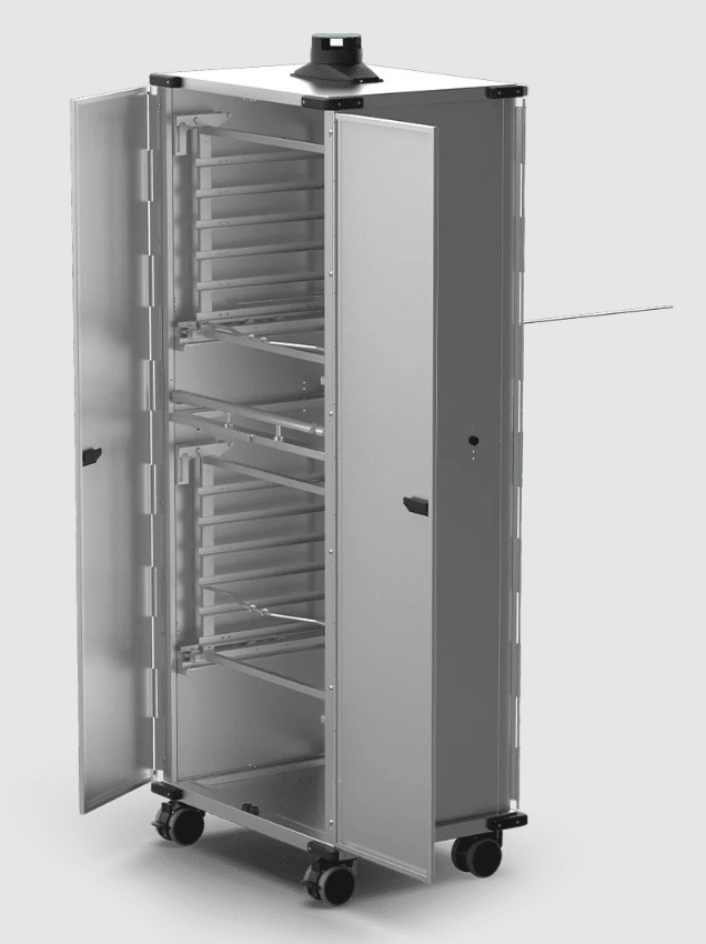 Нейтральный шкаф с дверями и держателями для загрузки, выгрузки и транспортировки 12 противней 600х400 мм с пищей.