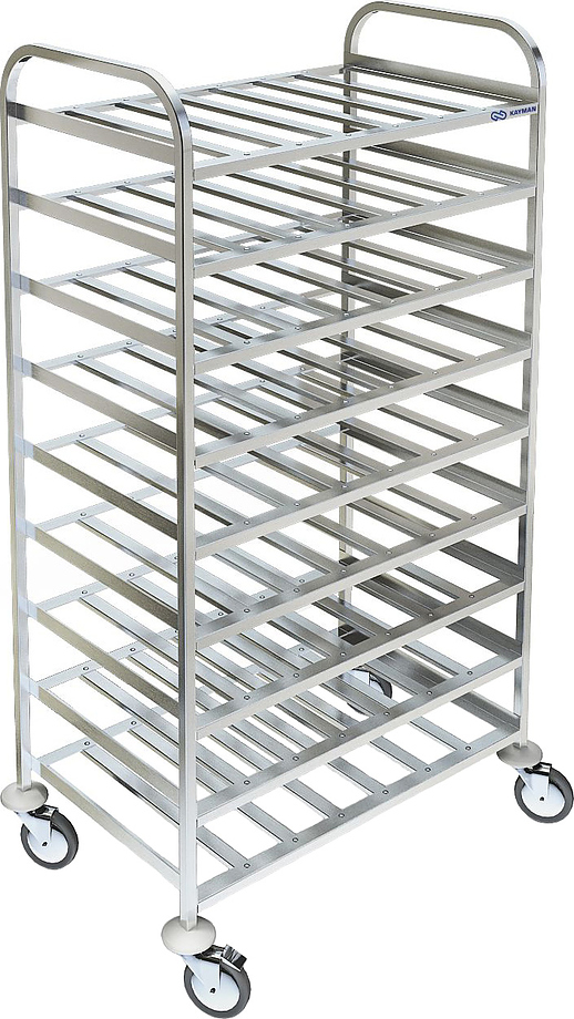 Стеллаж-шпилька для подносов Kayman СШ-14/918 используется на предприятиях общественного питания и торговли для транспортировки и хранения подносов, гастроемкостей и противней.