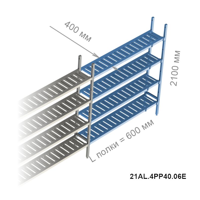 Стеллажная система Polair LOAD.ME Poly, дополнительная линейная секция, 4 яруса, высота 2,1 м, полка 0,6 м (21AL.4PP40.06Е)