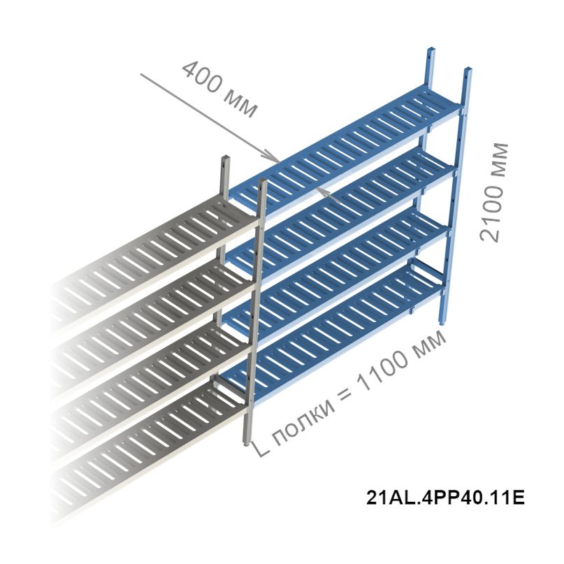 Стеллажная система Polair LOAD.ME Poly, дополнительная линейная секция, 4 яруса, высота 2,1 м, полка 1,1 м (21AL.4PP40.11Е)