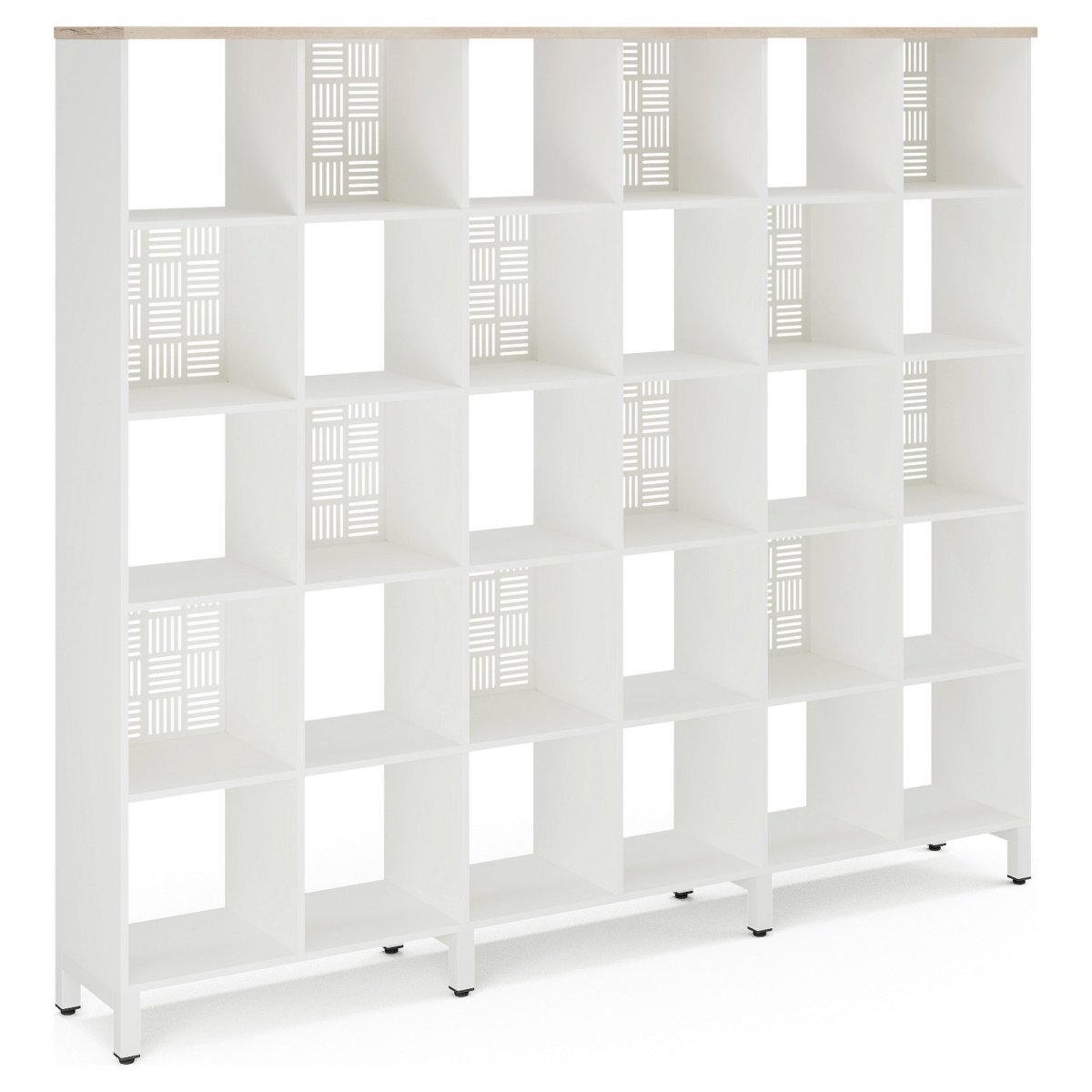 Стеллажи используются для экономии пространства, обеспечивая порядок при хранении документов, книг и различных предметов. Стеллажная система SQ-5X6 white/natural — это современная и практичная система хранения в доме, офисе, школе или торговом заведении.