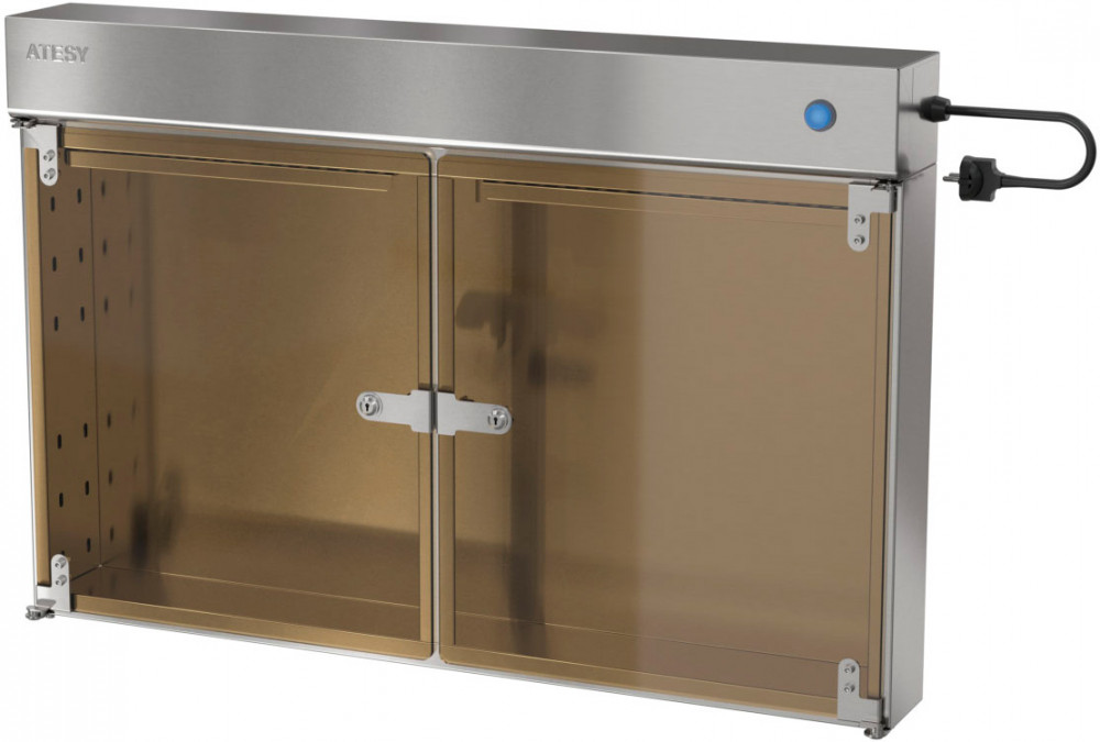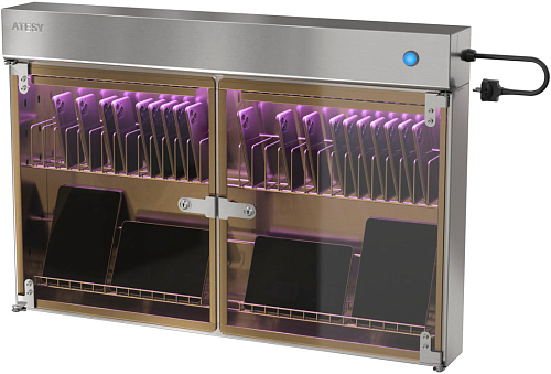 Стерилизатор смартфонов и гаджетов Atesy СТС-2-02-1 используется для обеззараживания поверхностей сотовых телефонов, планшетов, а также канцелярских товаров и связок ключей, за счет воздействия ультрафиолетового излучения на предприятиях общественного питания и торговли. Дверь с замком и электронным таймером на 1 мин. Полки и вешалки в комплект не входят и приобретаются отдельно.