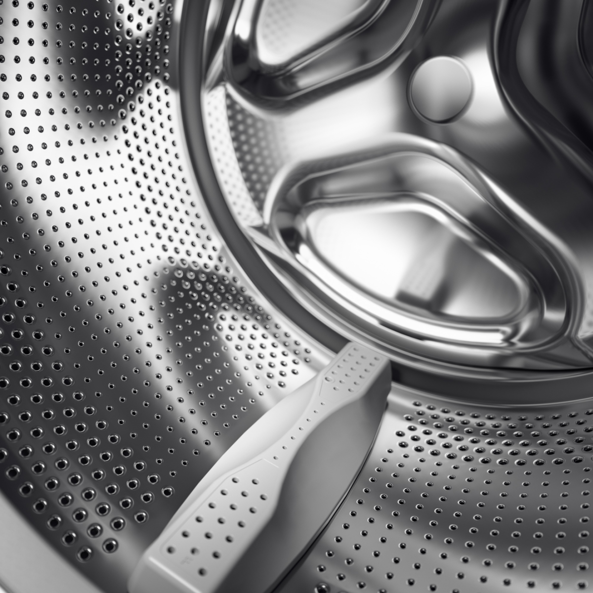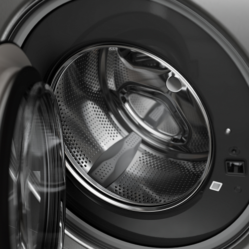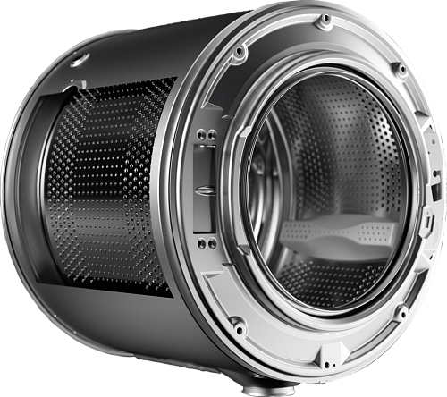 • Барабан из нержавеющей стали оснащён лопастями собственной разработки бренда, осторожно, но качественно стирающими вещи из любого типа материалов, в том числе деликатного.
