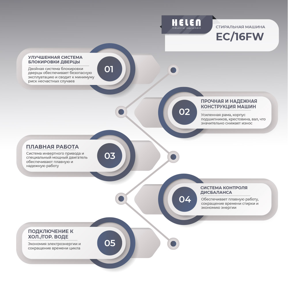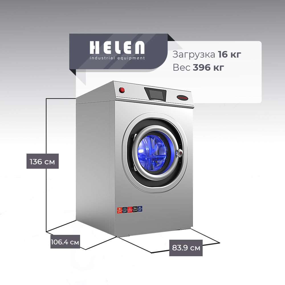 Стиральная машина HELEN SimpleClean EC/16FW используется в прачечных, гостиницах, больницах, ресторанах и других предприятиях сферы обслуживания.