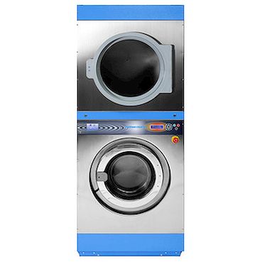 В стиральных тандемах IMESA TDM 1414 (пар) сушилка установлена на стиральной машине, фронтальная панель стиральной машины и сушильной машины изготовлена из нержавеющей стали AISI 304, единый корпус.