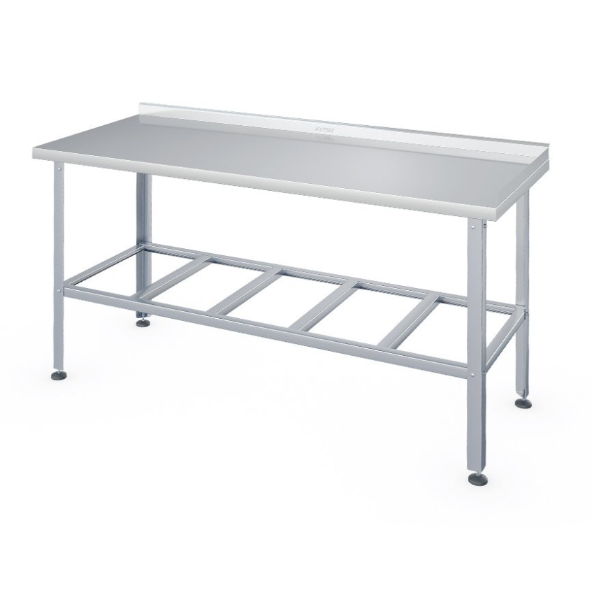 • Столешница и полка из нержавеющей стали AISI 304, столешница укреплена листом ламинированной древесностружечной плиты с внутренней стороны