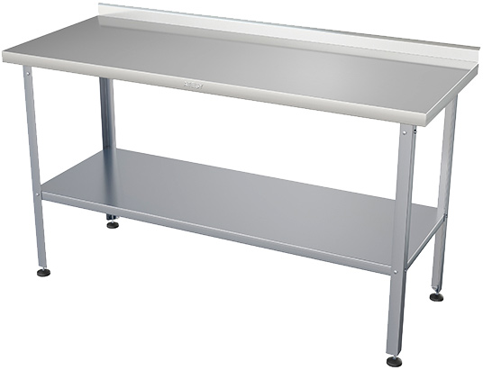 • Столешница и полка из нержавеющей стали AISI 304, столешница укреплена листом ламинированной древесностружечной плиты с внутренней стороны
