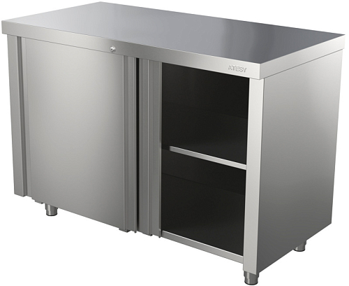 Стол Atesy СТ-С-1- 950.600-02-К (СТ-3/950/600) предназначен для разделывания и обработки пищевых продуктов, а также в качестве подставок для кухонного инвентаря и оборудования на предприятиях общественного питания и торговли. Дно и задняя стенка выполнены из оцинкованной стали, все остальные элементы - из нержавеющей стали AISI 430 толщиной 0,8 мм, столешница укреплена с внутренней стороны листом ламинированной древесно-стружечной плиты толщиной 16 мм​.