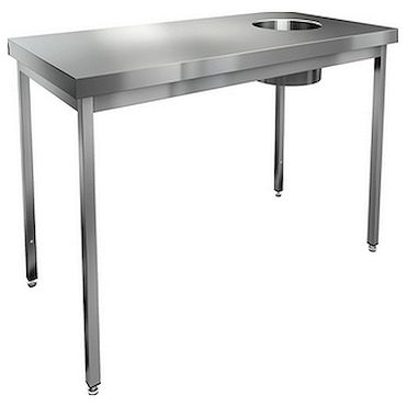 Стол центральный HICOLD НДСО-12/6 служит для сбора отходов на предприятиях общепита. Оборудование из нержавеющей стали AISI 430 не впитывает пищевые кислоты, химические добавки и запахи. Стол легко подвергается санитарной обработке любыми дезинфицирующими средствами.
