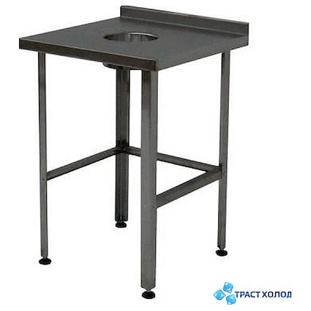 Стол для сбора отходов с бортом, столеш.нерж. Каркас оцинк СРО-3/1000-ЮТ - стол для использования на профессиональной кухне с отверстием для сбора отходор размерами 200х200 мм, с бортом, обвязка с трех сторон.
