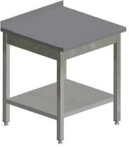 • Столешница выполнена из нержавеющей стали AISI 304, каркас выполнен из трубы нержавеющей стали AISI 430 40х40 мм, полка - из нержавеющей стали AISI 430 толщиной 0,8 мм.