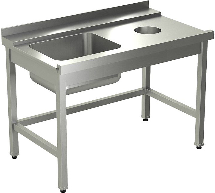 Стол для грязной посуды с направляющими KAYMAN для П/М TATRA СПМ-323/1507 правый используется на предприятиях общественного питания и торговли совместно с посудомоечными машинами TATRA TW.H50+DR и TW.H50+DR+DD для расстановки, временного хранения, предварительного ополаскивания и мытья грязной посуды и кухонного инвентаря. Модель оснащена разборным каркасом из трубы, раковиной, отверстием для сбора отходов, направляющими, плоским бортом и обвязкой с 3 сторон. Стол устанавливается справа от оборудования и имеет крепление на левой части. Столешница выполнена из нержавеющей стали AISI 304, каркас - из нержавеющей стали AISI 430.
