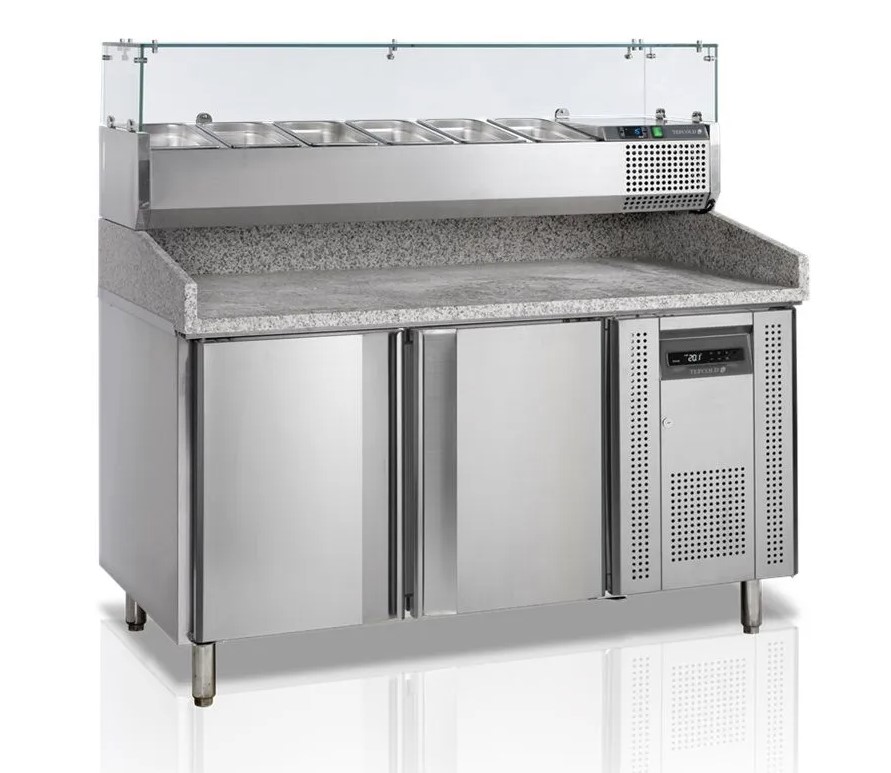 Стол для пиццы и салатов TEFCOLD PT1200 предназначен для обработки продуктов и раскатки теста, используемых для приготовления пиццы, на предприятиях общественного питания и торговли. Модель оснащена самозакрывающейся дверью и регулируемыми по высоте ножками. Внутренняя обшивка камеры и корпус выполнены из нержавеющей стали AISI 304. В витрине-надстройке можно хранить ингредиенты для приготовления пиццы.