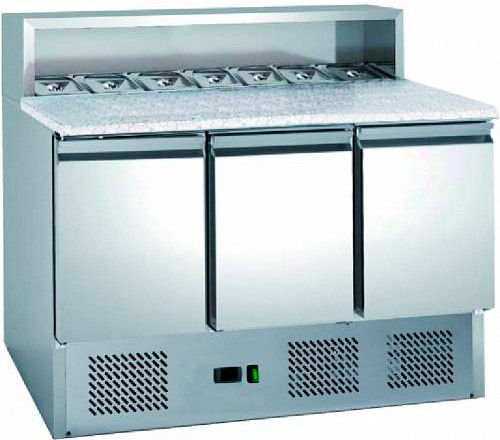 Стол для пиццы Hurakan HKN-PZLG3 используется на предприятиях общественного питания и торговли для хранения пиццы, салатов, сэндвичей и других блюд и ингредиентов к ним в охлажденном состоянии.