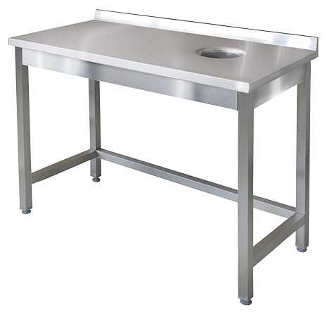 Стол для сбора отходов ITERMA СБ-241/1206П используется на предприятиях общественного питания и торговли для разделки и обработки пищевых продуктов, а также для сбора отходов, появляющихся в процессе этой работы. Модель оснащена ножками, регулирующимися по высоте. Разборный каркас выполнен из квадратной трубы 40х40 мм, столешница - из нержавеющей стали с двойной ламинированной ДСП. Отверстие для сбора отходов расположено справа.