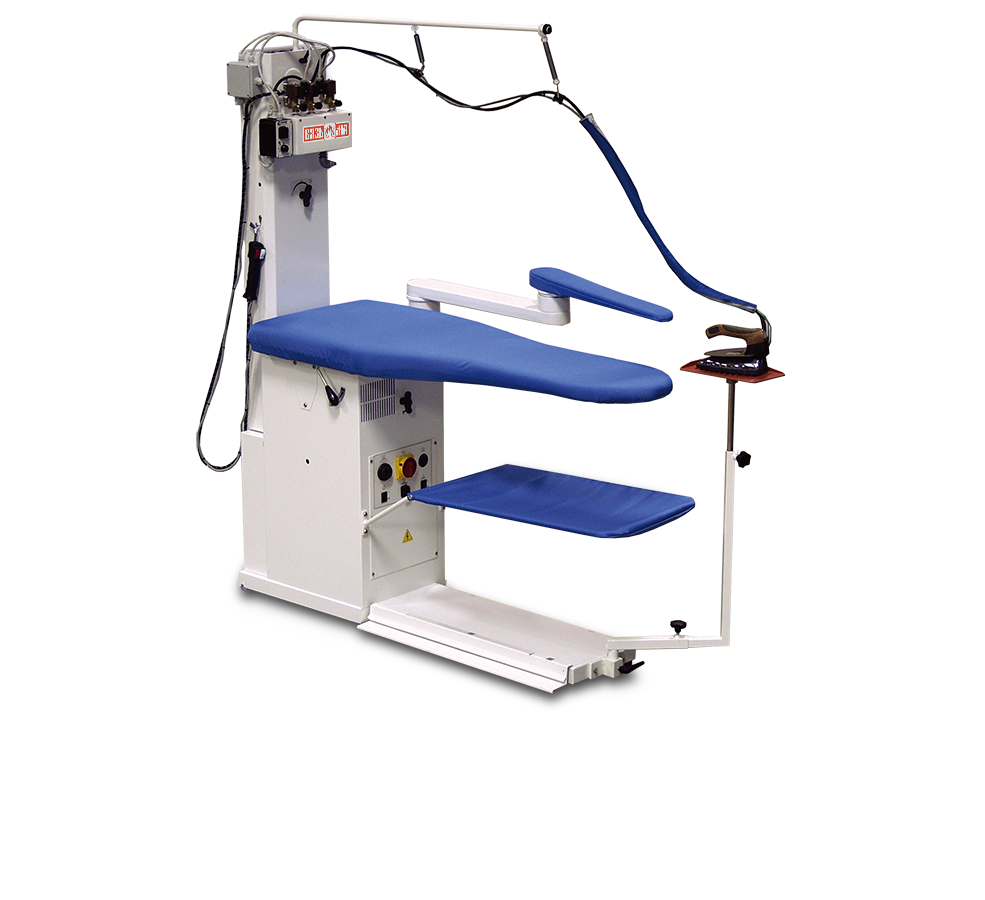 Гладильные столы предназначены для обработки фасонного белья, а также мелких деталей, не подлежащих глажке с помощью пресса или пароманекена: воротнички, манжеты, "стрелки" на брюках и т.п. Столы могут быть право - и левосторонними, в комплект поставки входит парогенератор и утюг. Некоторые модели имеют встроенный бойлер и дополнительный утюг. Возможна комплектация утюгами различных видов: паровыми или электрическими, с дополнительными микропереключателями. Все модели снабжены вакуумным отсосом для удаления влаги и поддувом для натяжения белья, а также системой защиты рабочей поверхности от перегрева. Возможна поставка чехлов из термостойкой полиэстеровой ткани. Существует возможность подключения утюгов без парогенератора, напрямую к централизованному источнику пара.