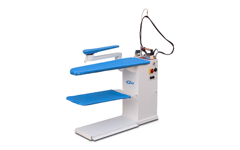 Гладильные столы предназначены для обработки фасонного белья, а также мелких деталей, не подлежащих глажке с помощью пресса или пароманекена: воротнички, манжеты, «стрелки» на брюках и т.п. Столы могут быть право- и левосторонними, в комплект поставки входит парогенератор и утюг. Некоторые модели имеют встроенный бойлер и дополнительный утюг. Возможна комплектация утюгами различных видов: паровыми или электрическими, с дополнительными микро-переключателями. Все модели снабжены вакуумным отсосом для удаления влаги и поддувом для натяжения белья, а также системой защиты рабочей поверхности от перегрева. Возможна поставка чехлов из термостойкой полиэстеровой ткани. Существует возможность подключения утюгов без парогенератора, напрямую к централизованному источнику пара.