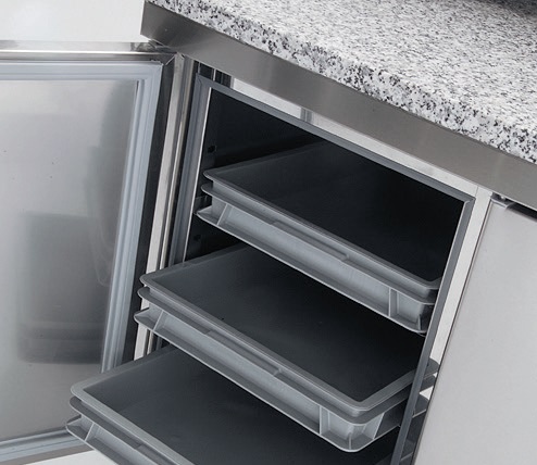 Стол холодильный пиццерийный Coreco MR80150P предназначен для охлаждения и кратковременного хранения скоропортящихся продуктов, теста и ингредиентов для приготовления пиццы в пекарнях, кондитерских, на предприятиях пищевой промышленности, общественного питания и торговли. Модель оснащена граниной рабочей поверхностью и охлаждаемым объемом на 3 пластиковых ящика для теста 600х400 мм. Корпус изделия выполнен из нержавеющей стали AISI 304.