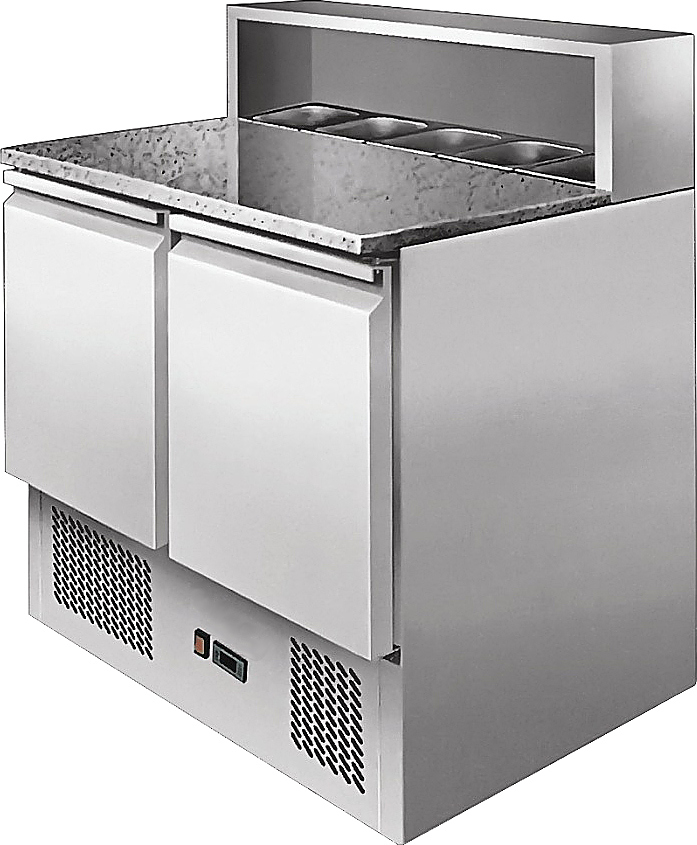 Стол холодильный пиццерийный Koreco SESL 3831 используется на предприятиях общественного питания и торговли для раскатки теста и обработки ингредиентов для приготовления пиццы, охлаждения и кратковременного хранения скоропортящихся продуктов и напитков. Корпус и камера выполнены из нержавеющей стали AISI 439.