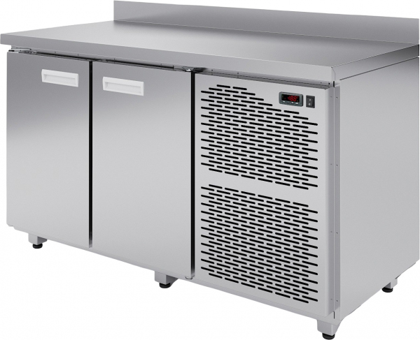 Стол имеет 2 глухие двери, 4 полки-решётки, правый агрегат, электронный блок управления, 6 регулируемых по высоте ножек, клапан шредера. Стол предназначен для эксплуатации при температуре окружающей среды до +32С и относительной влажности воздуха до 60%. Автоматическая оттайка осуществляется ТЭНом. Хладагент - R290.