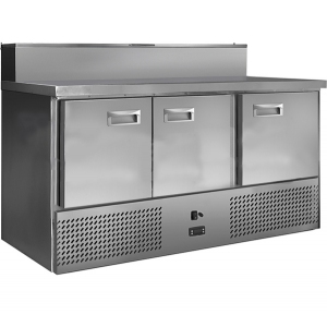 Стол холодильный среднетемпературный, гастронормированный GN1/1, для пиццы, со столешницей с коробом для установки 8GN1/6 (в комплект не входят) с крышкой, изготовлен из нержавеющей стали. Температурный режим: -2/+8С. Стол имеет 3 глухие распашные двери, динамическую систему охлаждения, 4 регулируемые по высоте ножки, нижний агрегат, микропроцессорный блок управления, автоматическую оттайку испарителя, цельнозаливной корпус. Задняя стенка стола выполнена из оцинкованной стали.