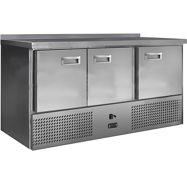Стол холодильный Финист СХСн-700-3 (1485х700х850) борт 45мм предназначен для обработки, разделки/раскатки, хранения продуктов питания в охлажденном виде на предприятиях общественного питания и торговли. Среднетемпературное оборудование с нижним агрегатом оснащено микропроцессорным блоком управления, динамическим охлаждением и 3-мя глухими распашными дверьми.
